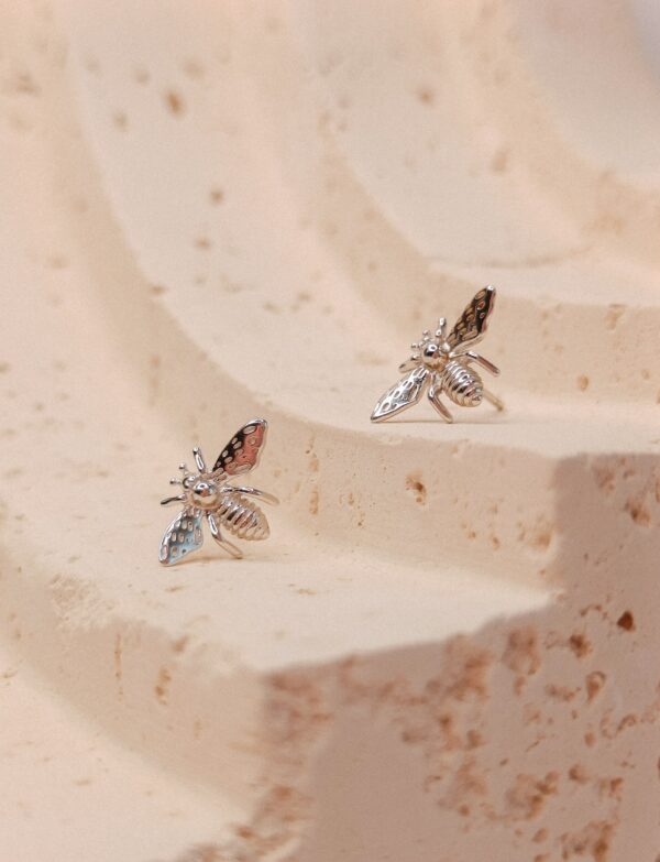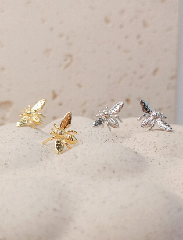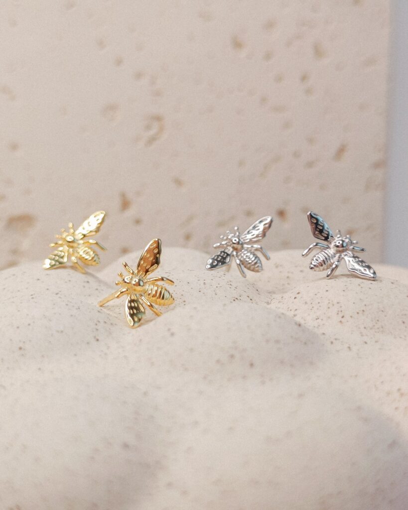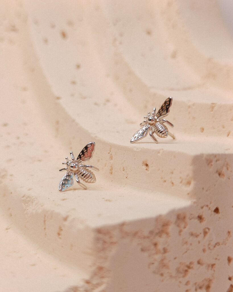Sterling zilveren oorstekers met bij. De studs zijn gemaakt van 925 sterling zilver en zijn 8x14mm groot. Ook verkrijgbaar in goud vermeil.