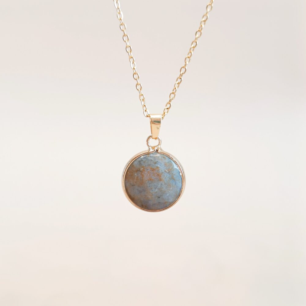 Deze mos agaat ketting is gemaakt van PVD-gecoat stainless steel (45 + 5 cm verlengstuk) en heeft een ronde hanger van 17 mm. Mos agaat staat symbool voor natuur, groei en stabiliteit.