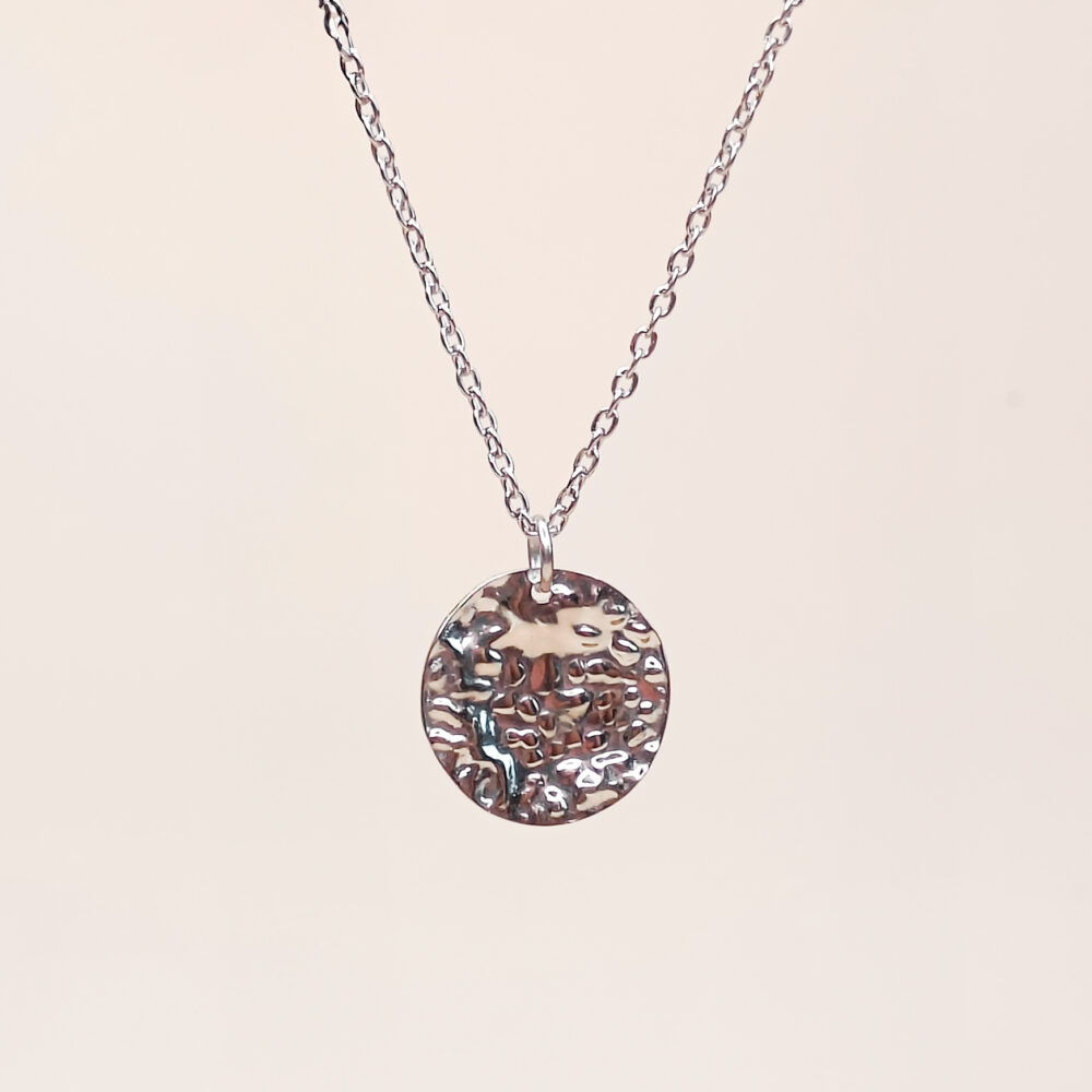 Stainless steel met een gehamerde hanger als ode aan de volle maan.
