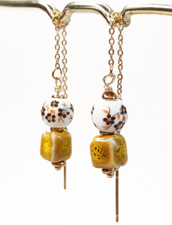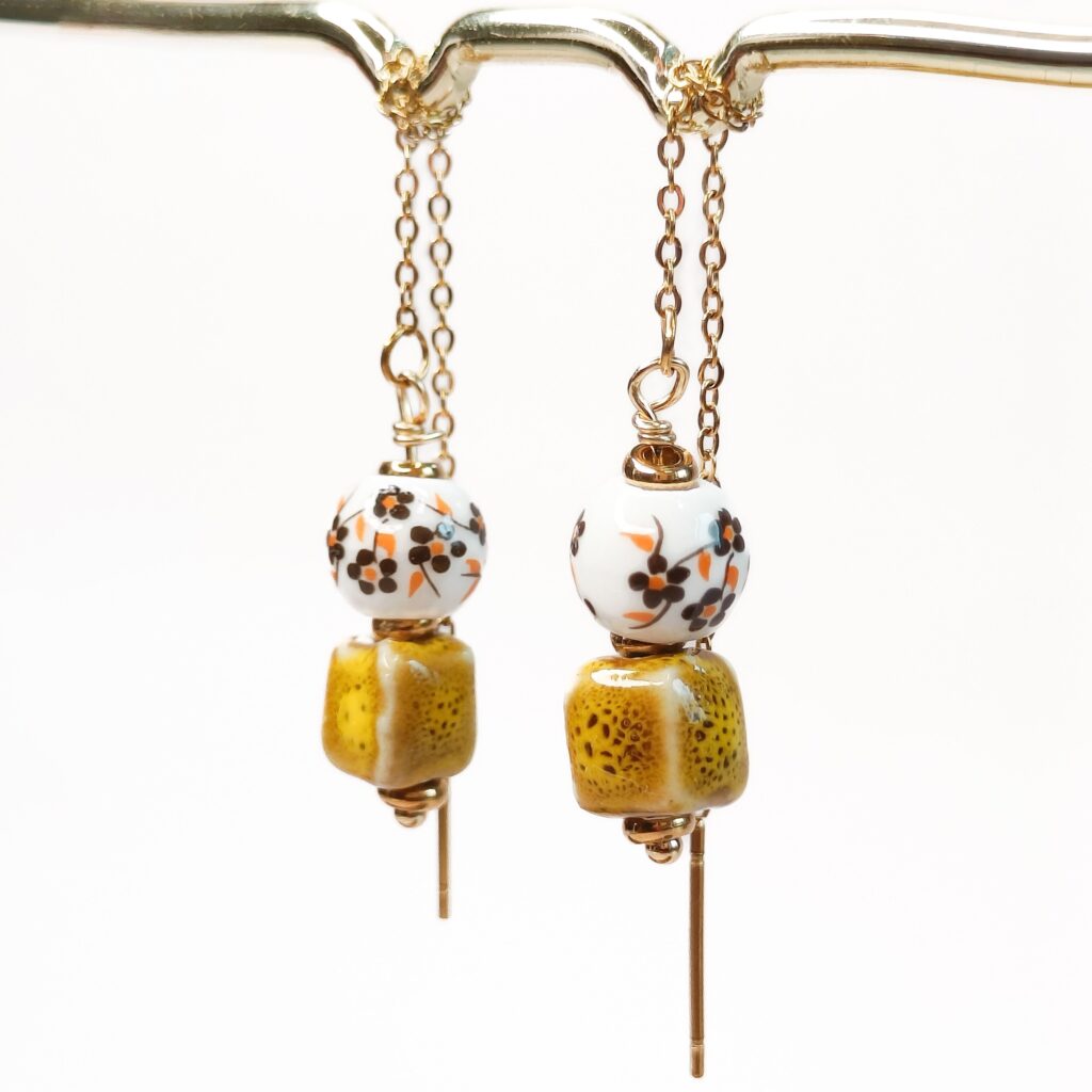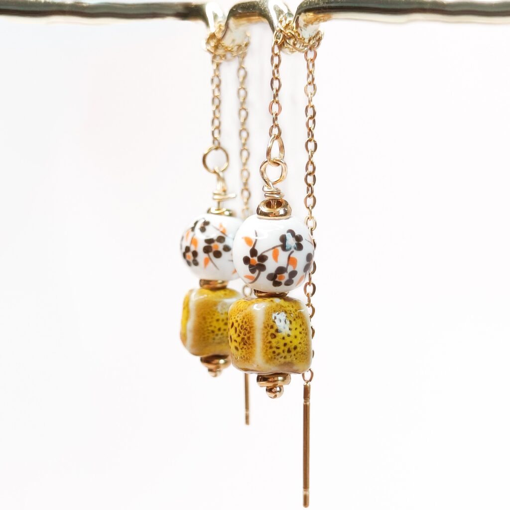 De Keramiek Threaders Bruin Retro hebben keramieken kralen met een retro bloemenprint. De kralen zijn ca 8 mm en de threaders zijn in totaal ongeveer 11 cm lang. De details zijn gemaakt van 18k PVD gecoat stainless steel.