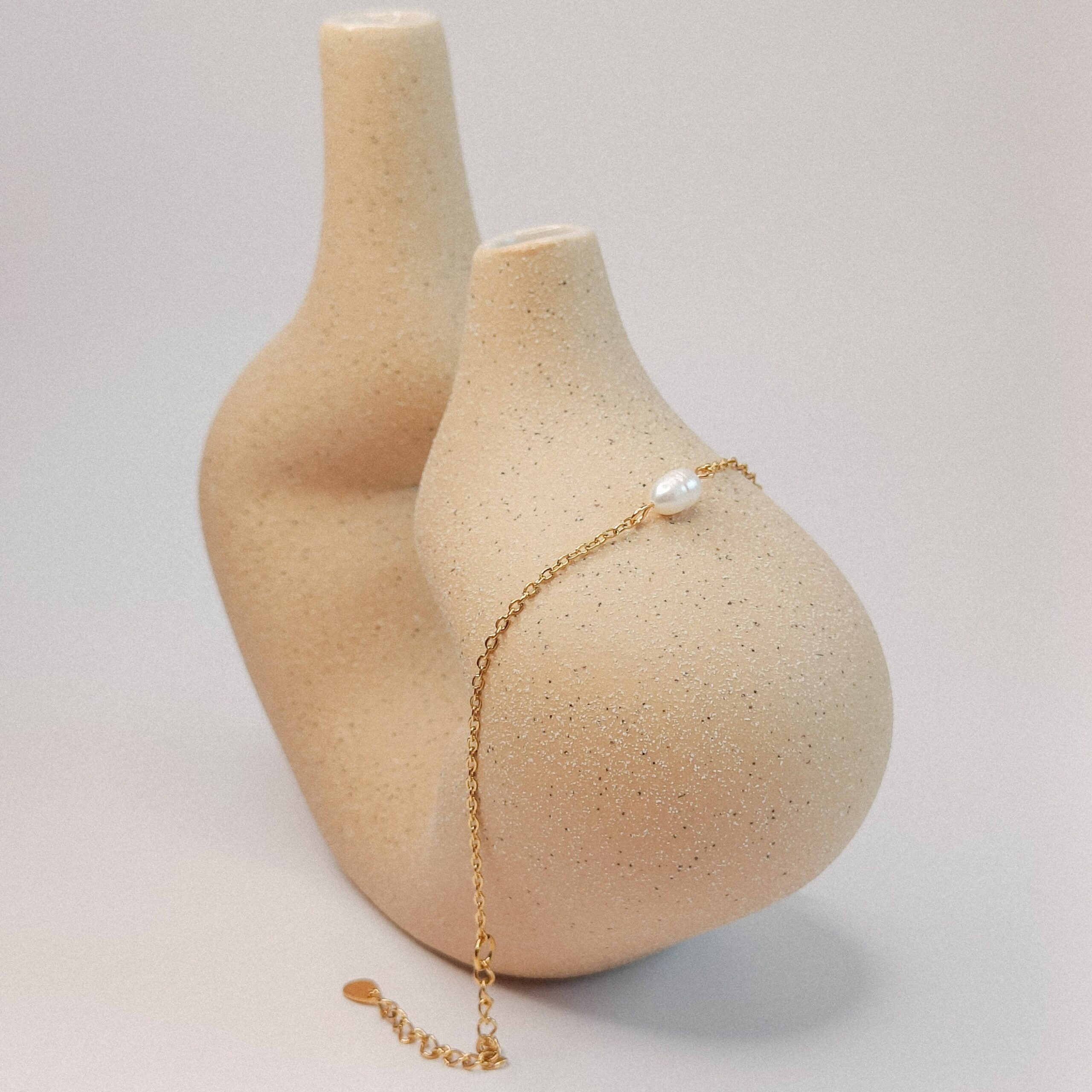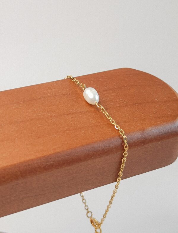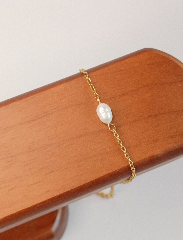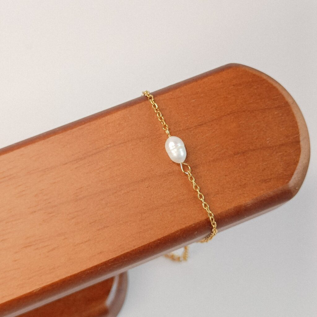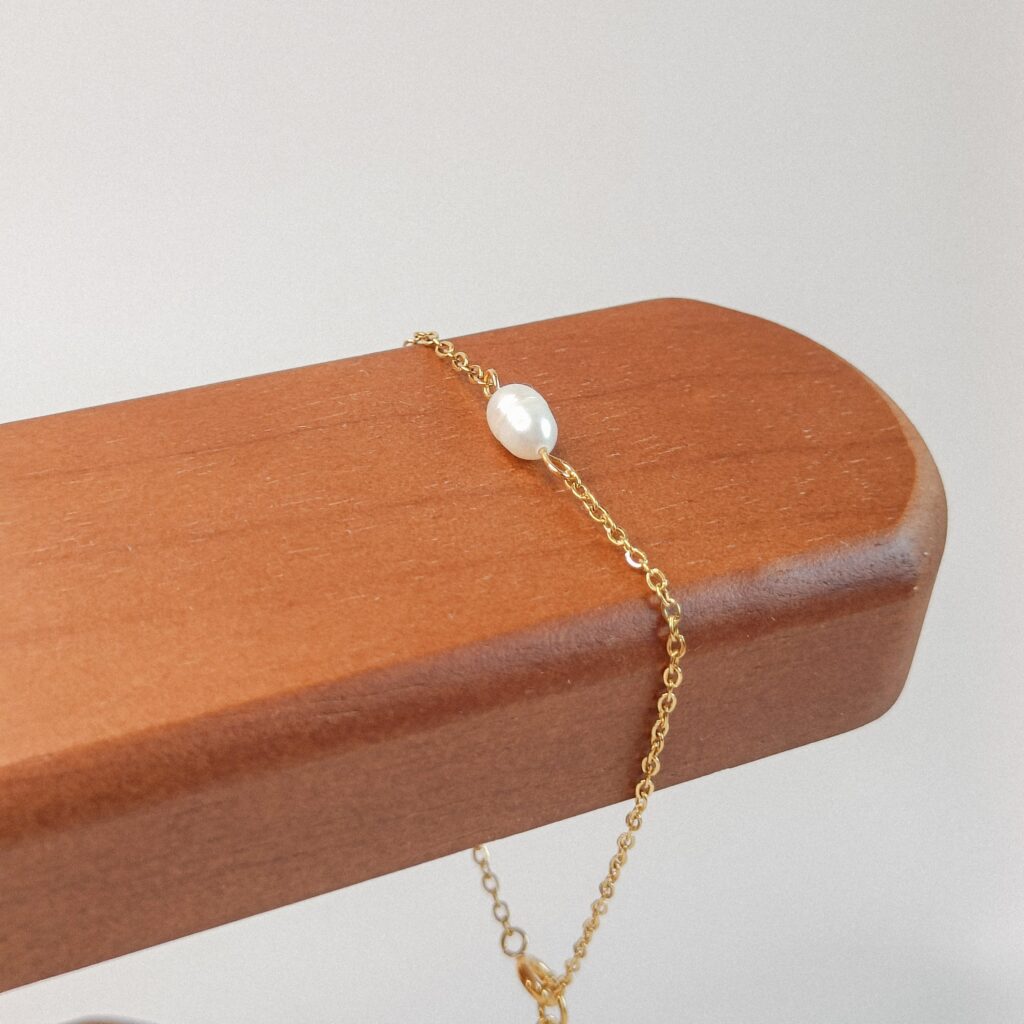 18k PVD gecoat stainless steel met een zoetwaterparel, symbool voor zuiverheid, harmonie en vrouwelijke energie.