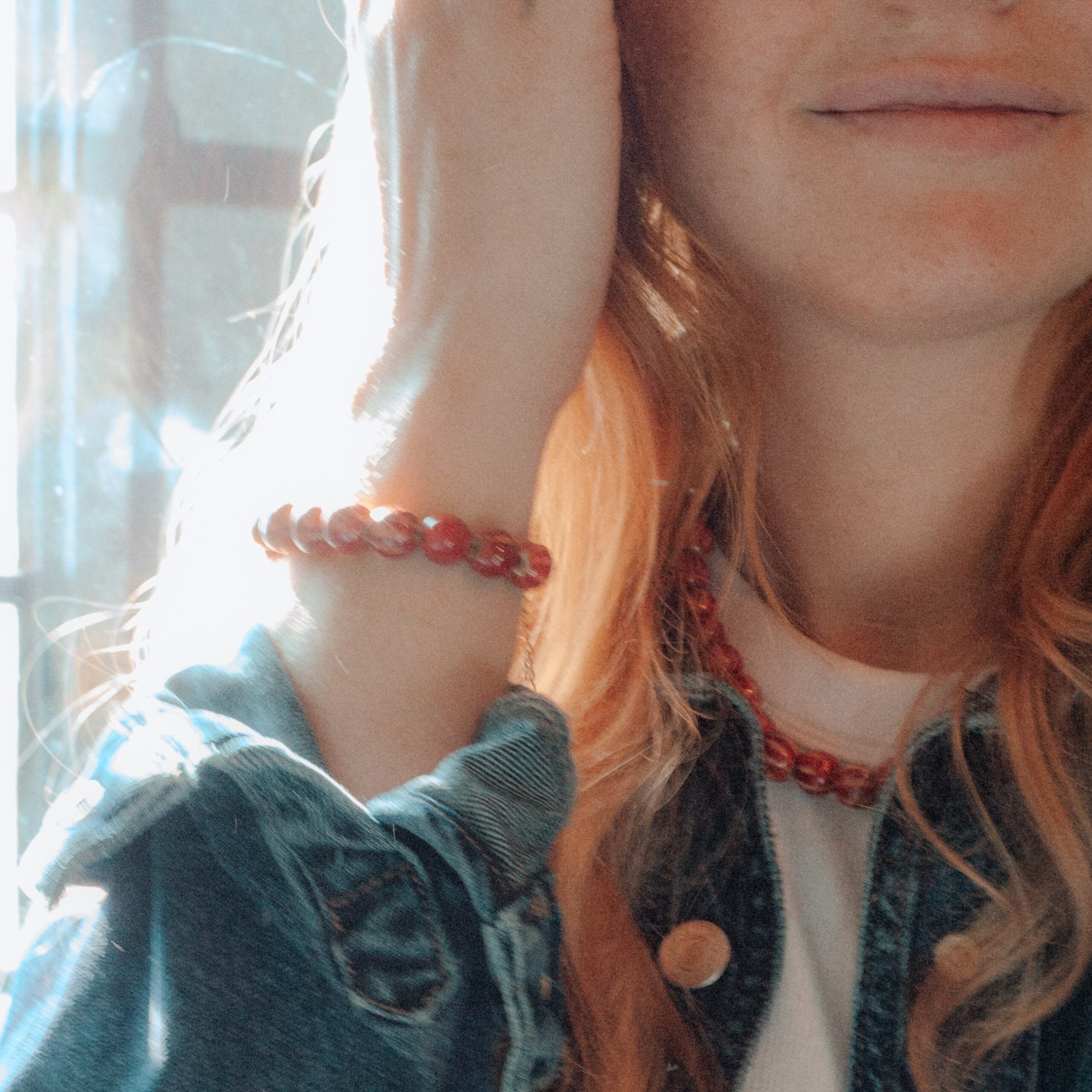We werken met natuurlijke materialen zoals edelstenen, keramiek, hout en parels, en gebruiken metalen van hoge kwaliteit zoals 925 sterling zilver, goud vermeil, gold filled en stainless steel met een duurzame PVD-coating. Ieder sieraad wordt in kleine oplage gemaakt in ons atelier in Zwolle. We streven naar sieraden die lang meegaan, met aandacht voor duurzaamheid, inclusiviteit en maatschappelijke betrokkenheid.