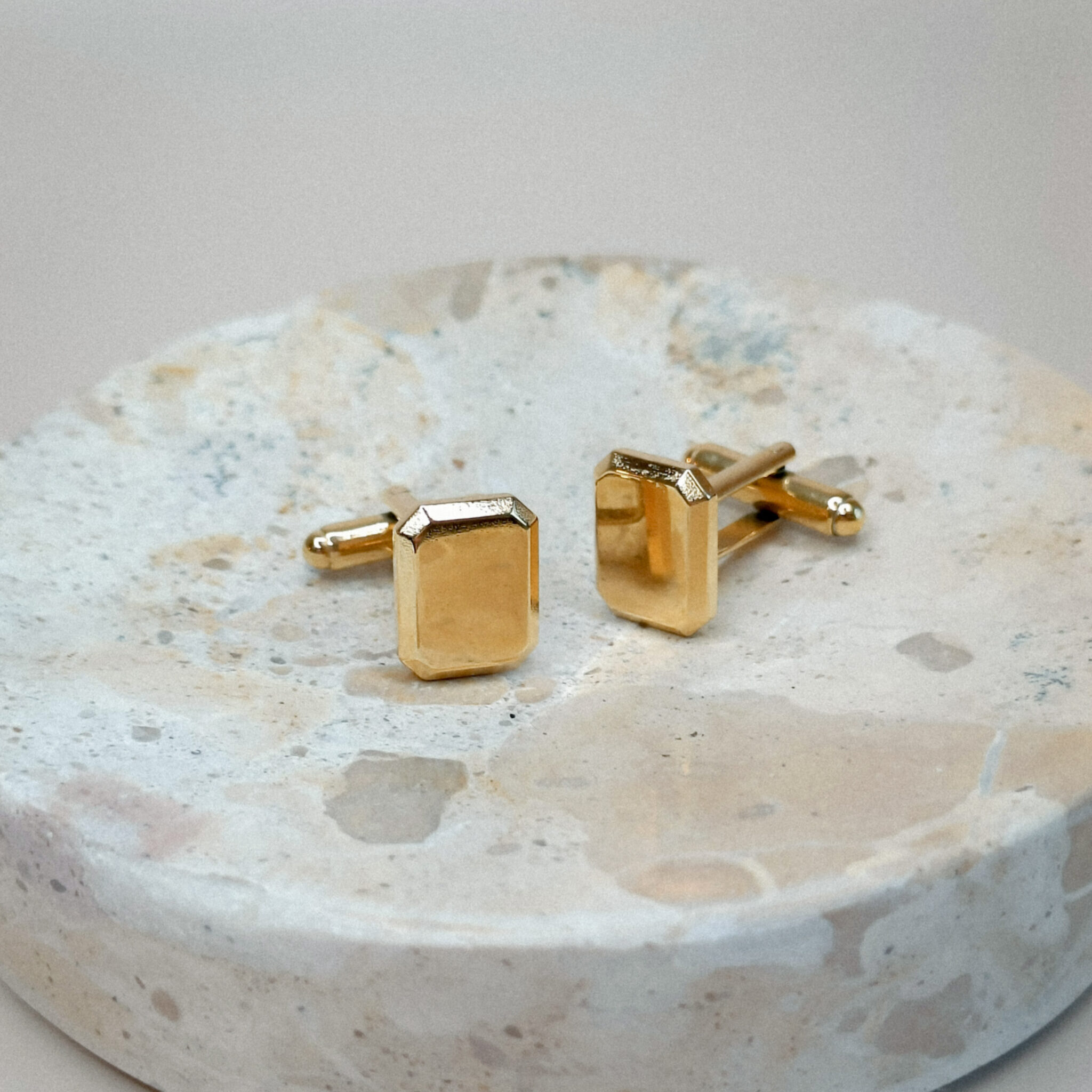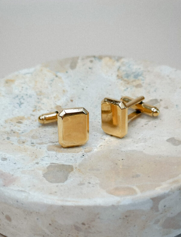De Schild Manchetknopen in goud zijn eenvoudig en klassiek. Gemaakt van PVD-gecoat stainless steel, voor een slijtvaste afwerking die lang meegaat.