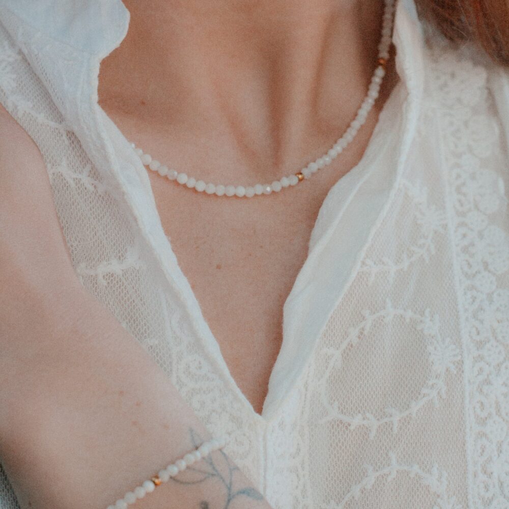 De Sparkling Maansteen Ketting is gemaakt van 3 mm facet geslepen kralen. Maansteen wordt gezien als een steen van intuĆÆtie, vrouwelijke energie en een nieuw begin. De ketting sluit met een rond gevormd vierkant slotje van 18k PVD-gecoat stainless steel en is ca. 43 cm lang. Een subtiele ketting die prachtig combineert met andere sieraden, of juist op zichzelf.