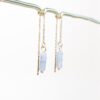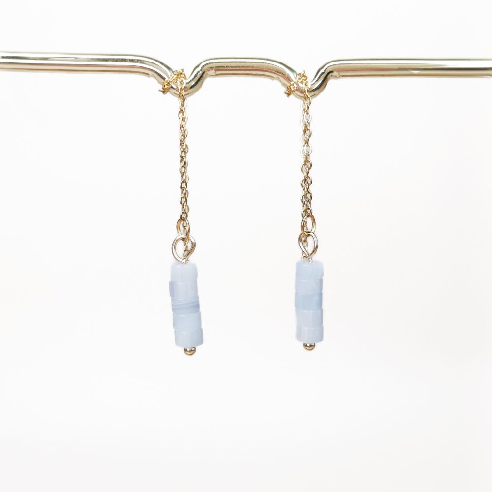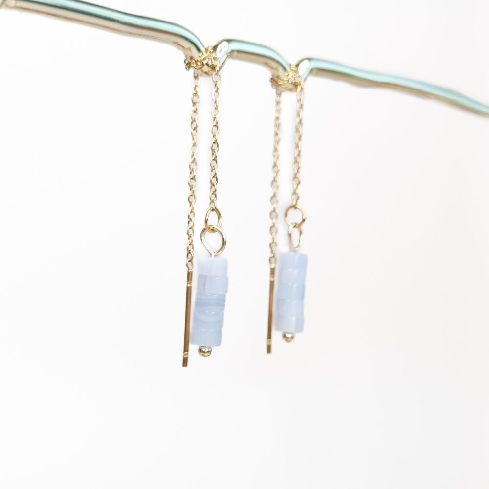 De Tenue Threader Oorbellen zijn gemaakt van 18k PVD gecoat stainless steel en hebben een hanger van paars agaat in een cilindervormige kraal. De oorbellen zijn ca. 10 cm lang en doordat het threaders zijn, kun je zelf bepalen hoe ver je ze door je oor draagt. Paars agaat staat voor bescherming, stabiliteit en innerlijke rust.