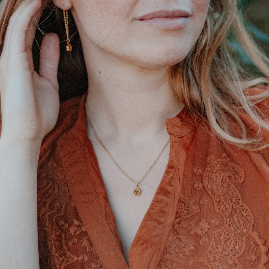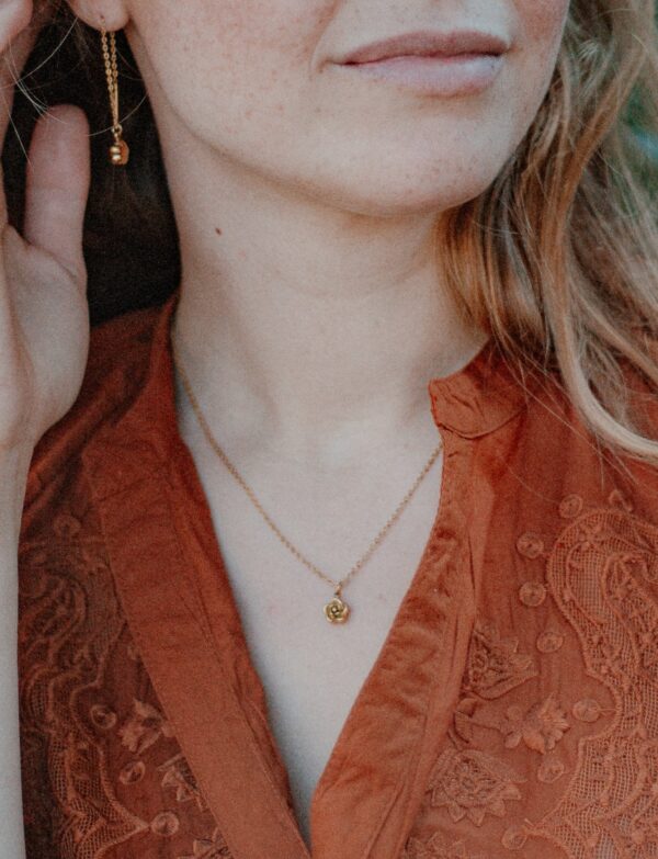 De Tiny Rosula Ketting is een minimalistische ketting met een kleine roos als hanger. De roos staat voor zachtheid en liefde. De hanger is 8 mm en de ketting is 45 cm met een verlengstukje van 5 cm. Gemaakt van 18k PVD gecoat stainless steel.