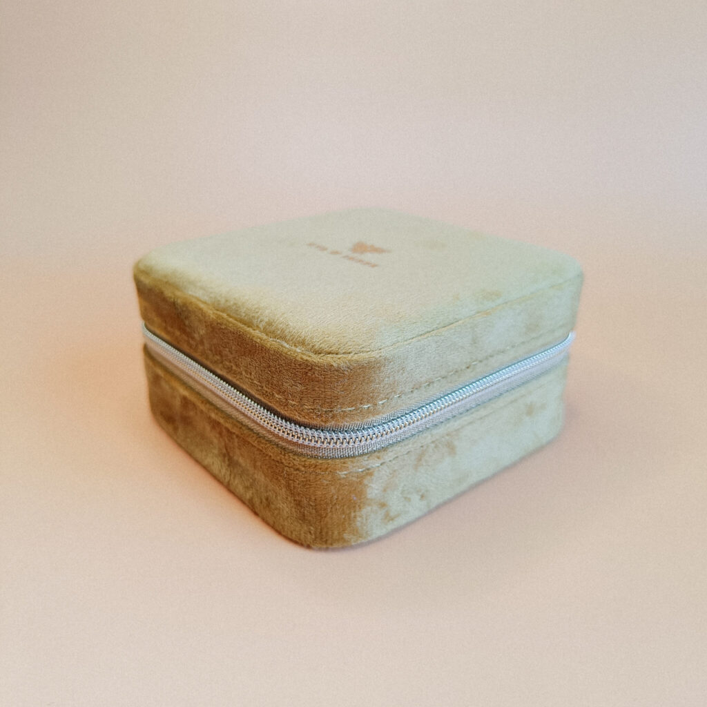 De Travelcase Square Honey is de perfecte reisgenoot voor je favoriete sieraden. Met een afmeting van 10 x 10 x 5 cm is deze compacte gele sieradendoos ideaal om mee te nemen in je tas of koffer, zonder dat je sieraden in de knoop raken of beschadigen.