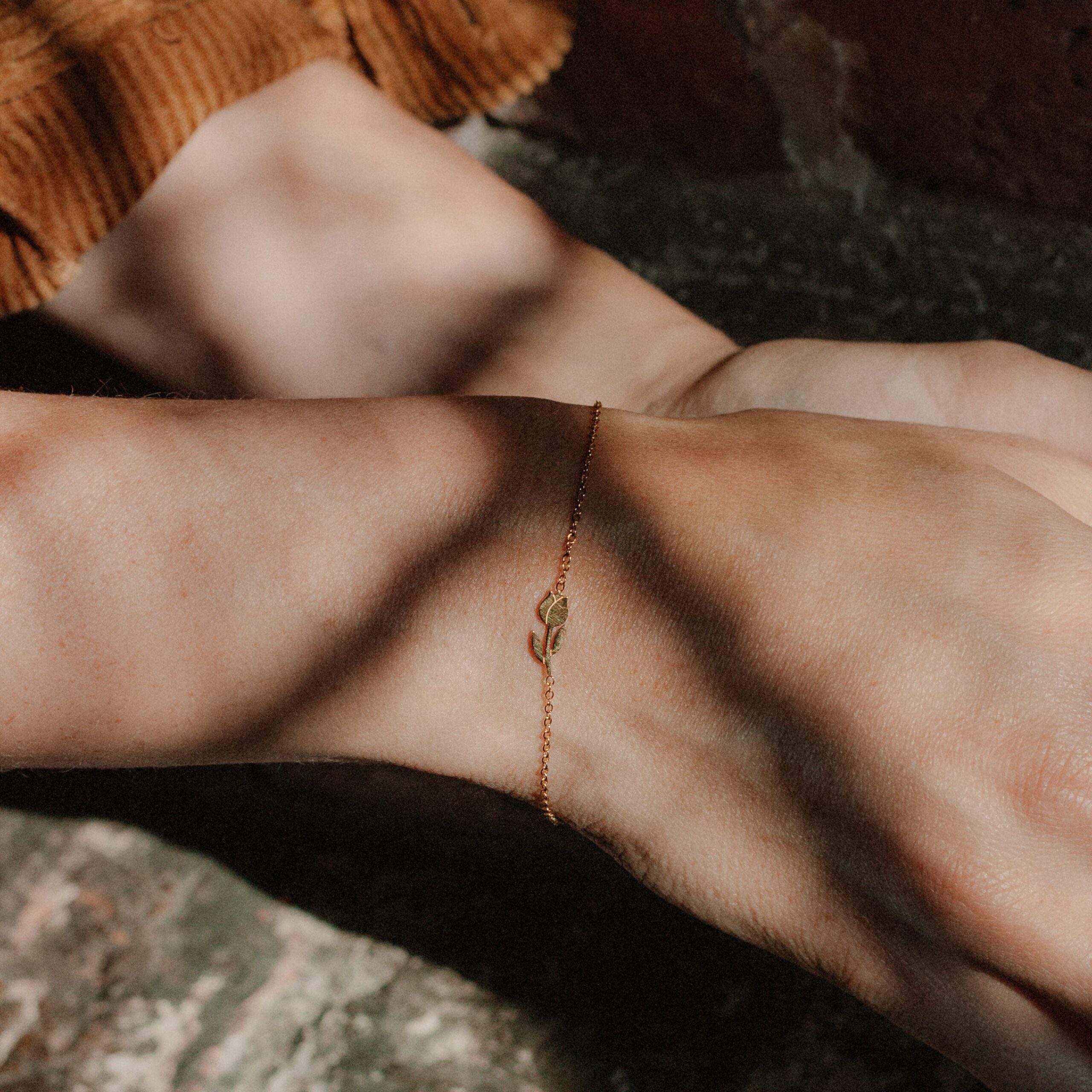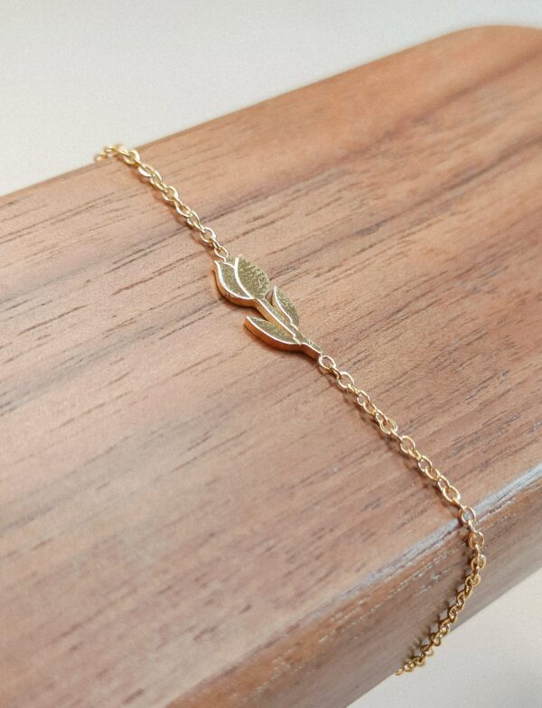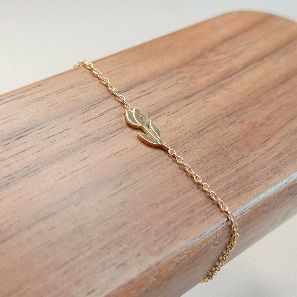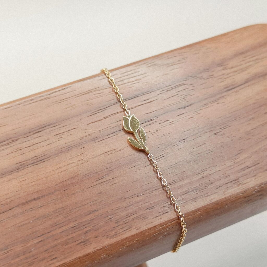 De Tulipa Armband Goud is een fijne armband met een kleine tulp. De tulp staat voor liefde, vernieuwing en geluk. De armband is 16 cm met een verlengstukje van 3 cm. Gemaakt van 18k PVD gecoat stainless steel.