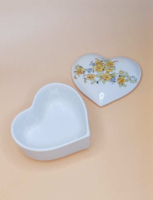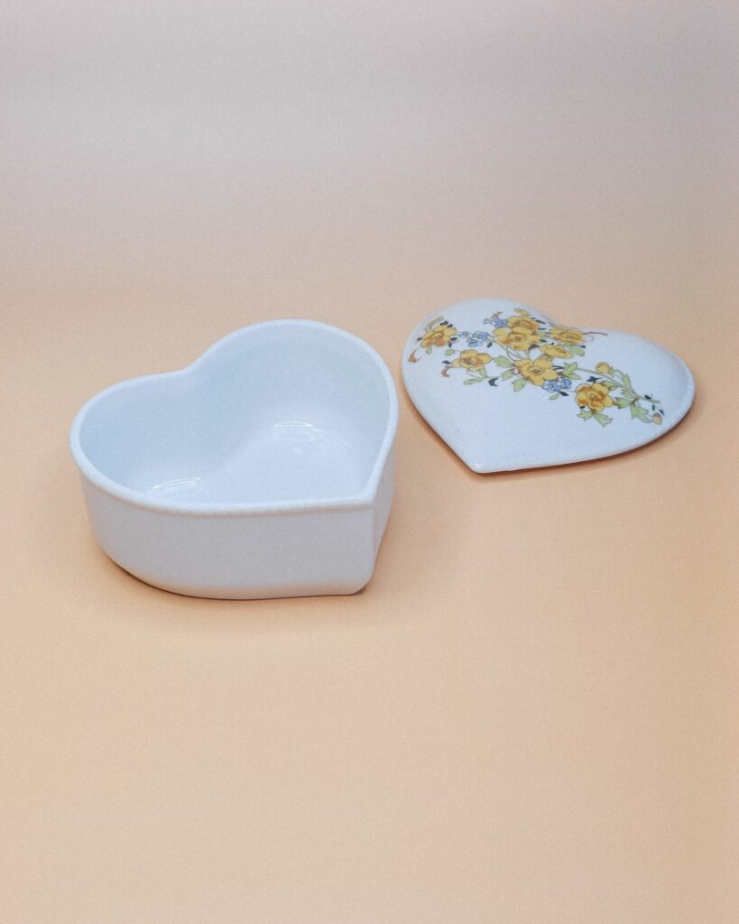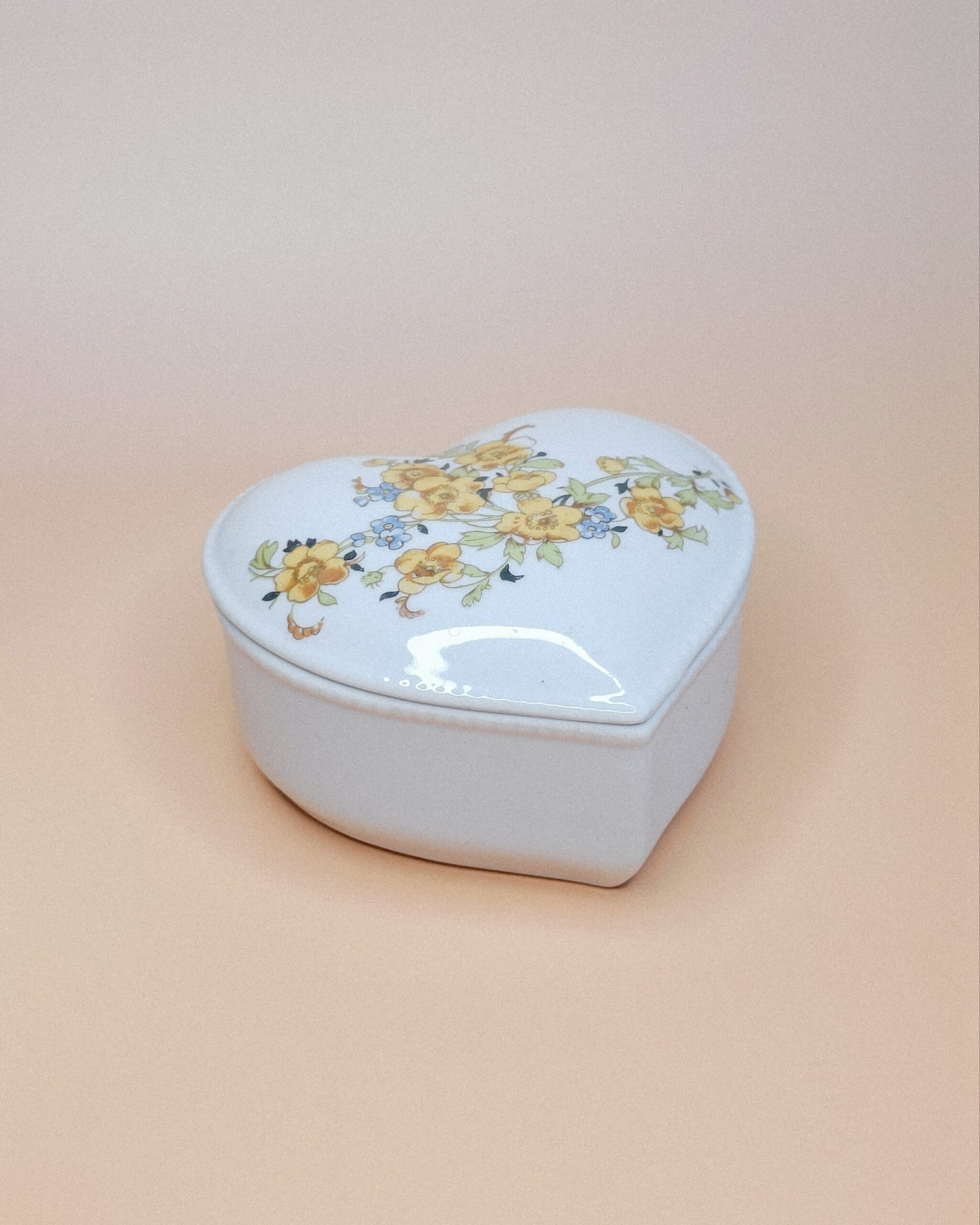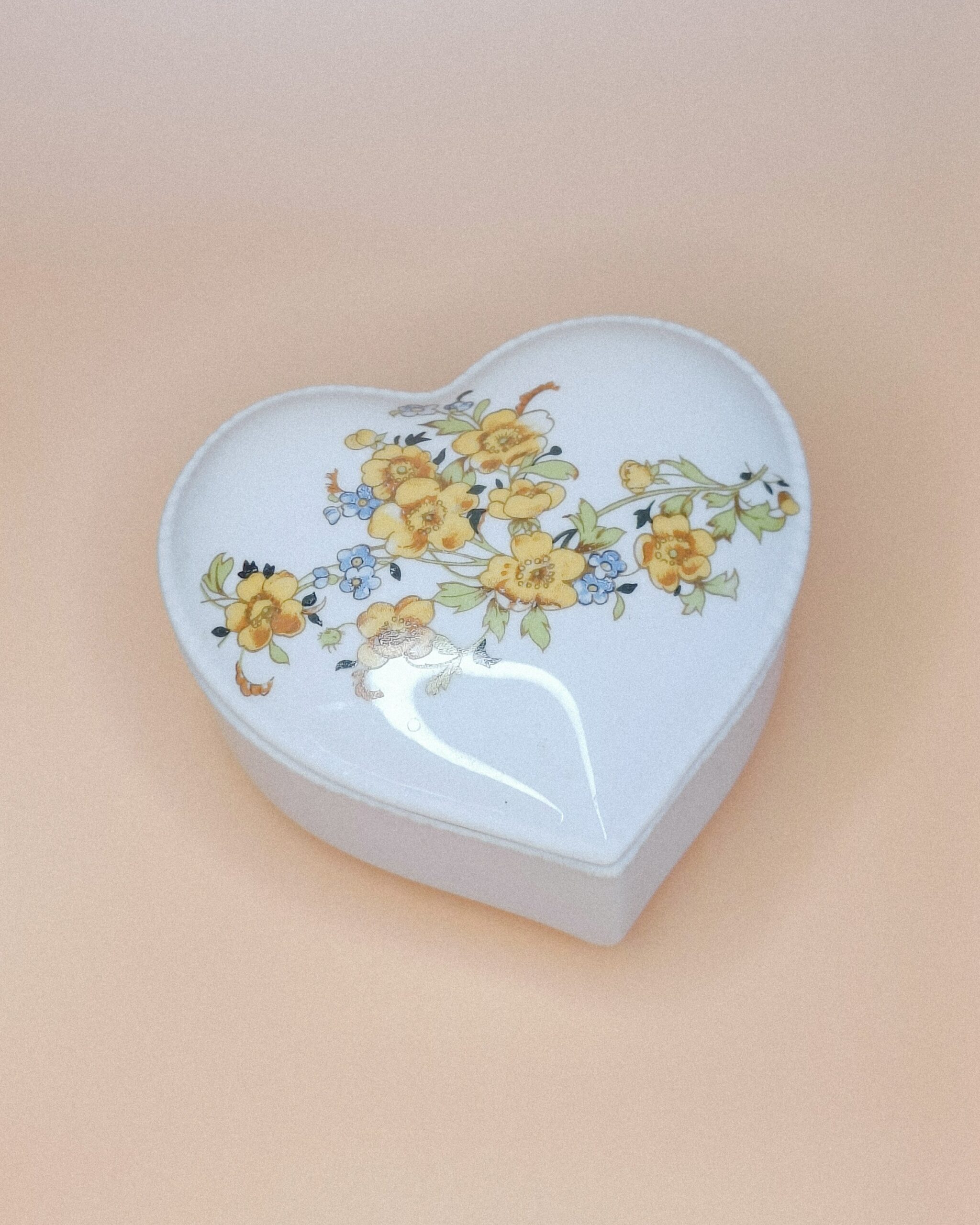 Uit onze Vintage Treasures collectie, een vintage sieradendoosje met deksel van porselein met bloemtekeningen