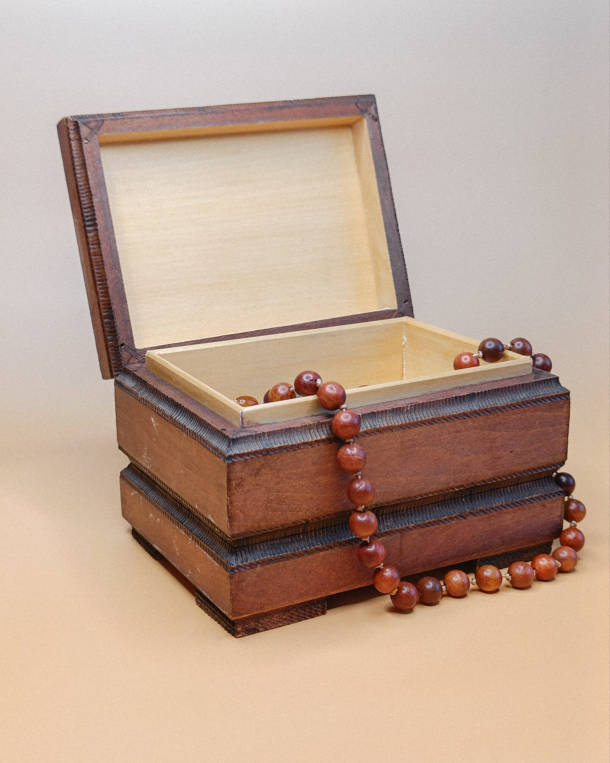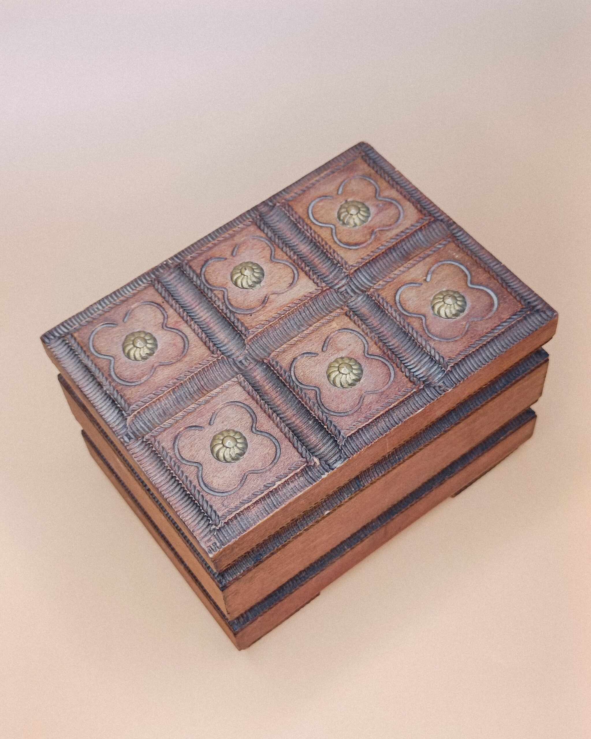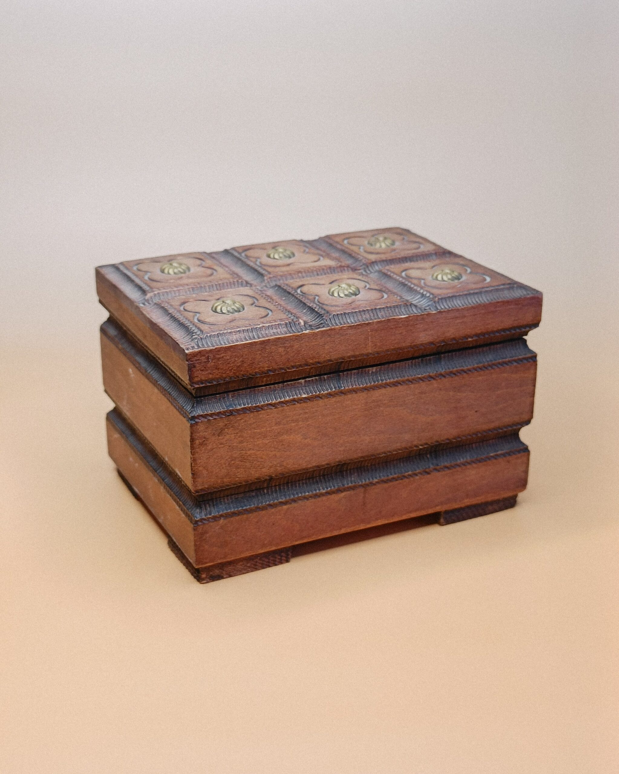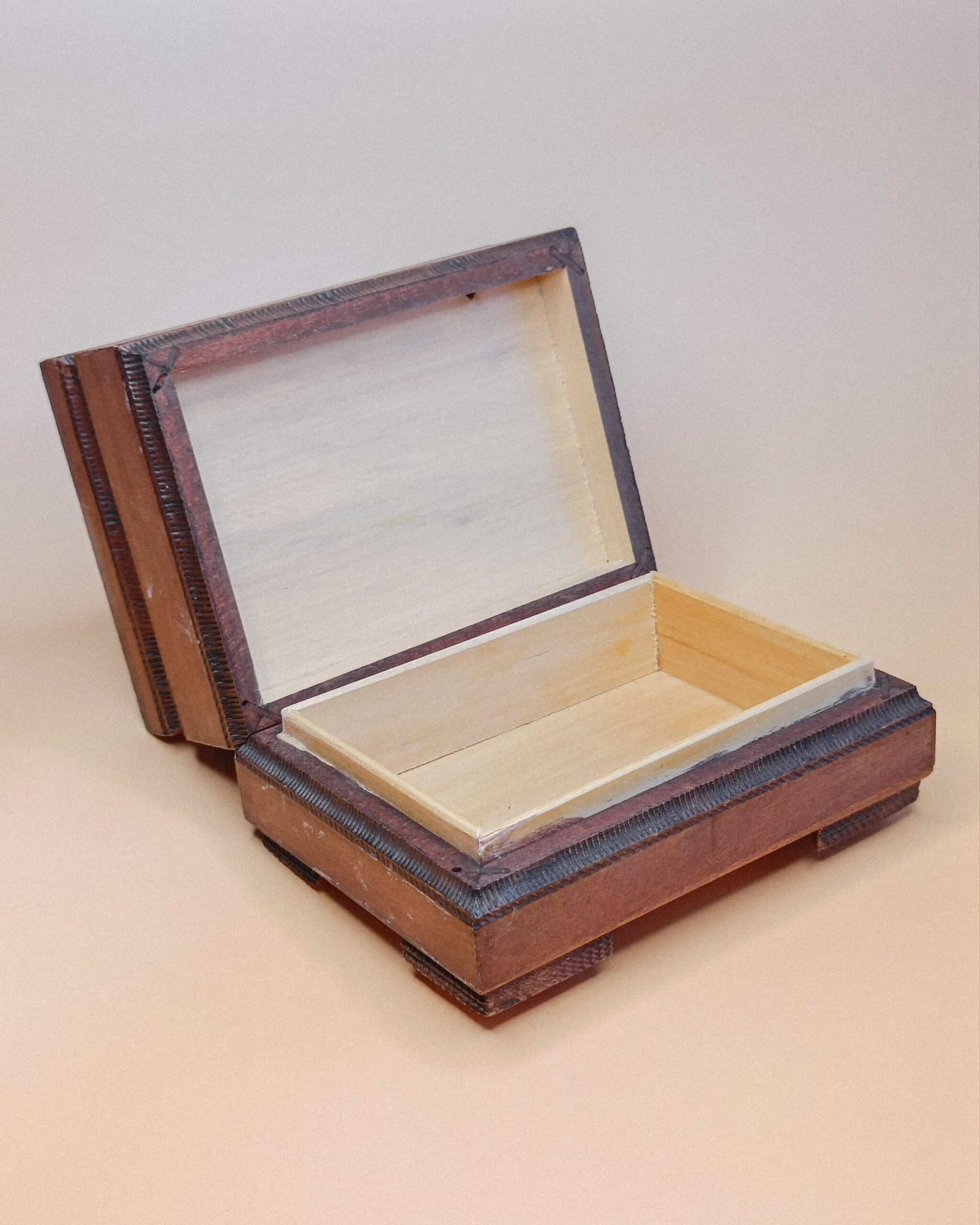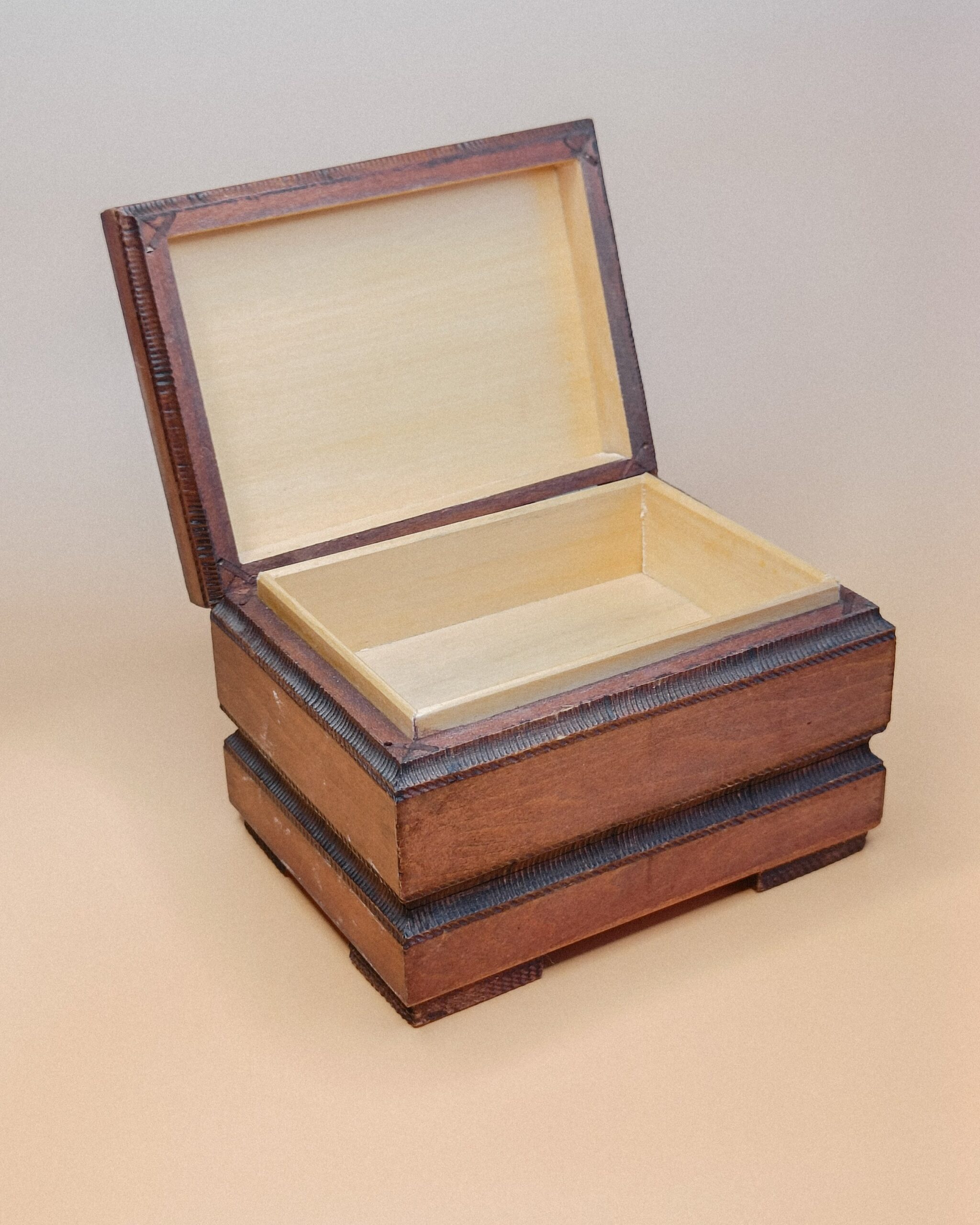 Het kistje is 12 x 9 x 8 cm groot en gemaakt van gekruid lindenhout.